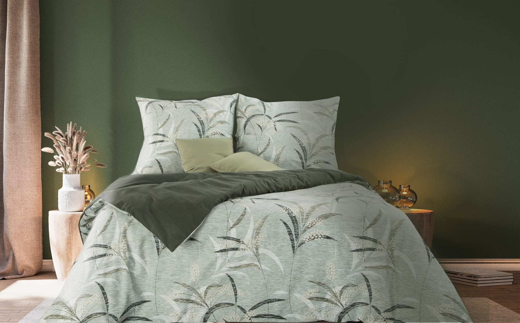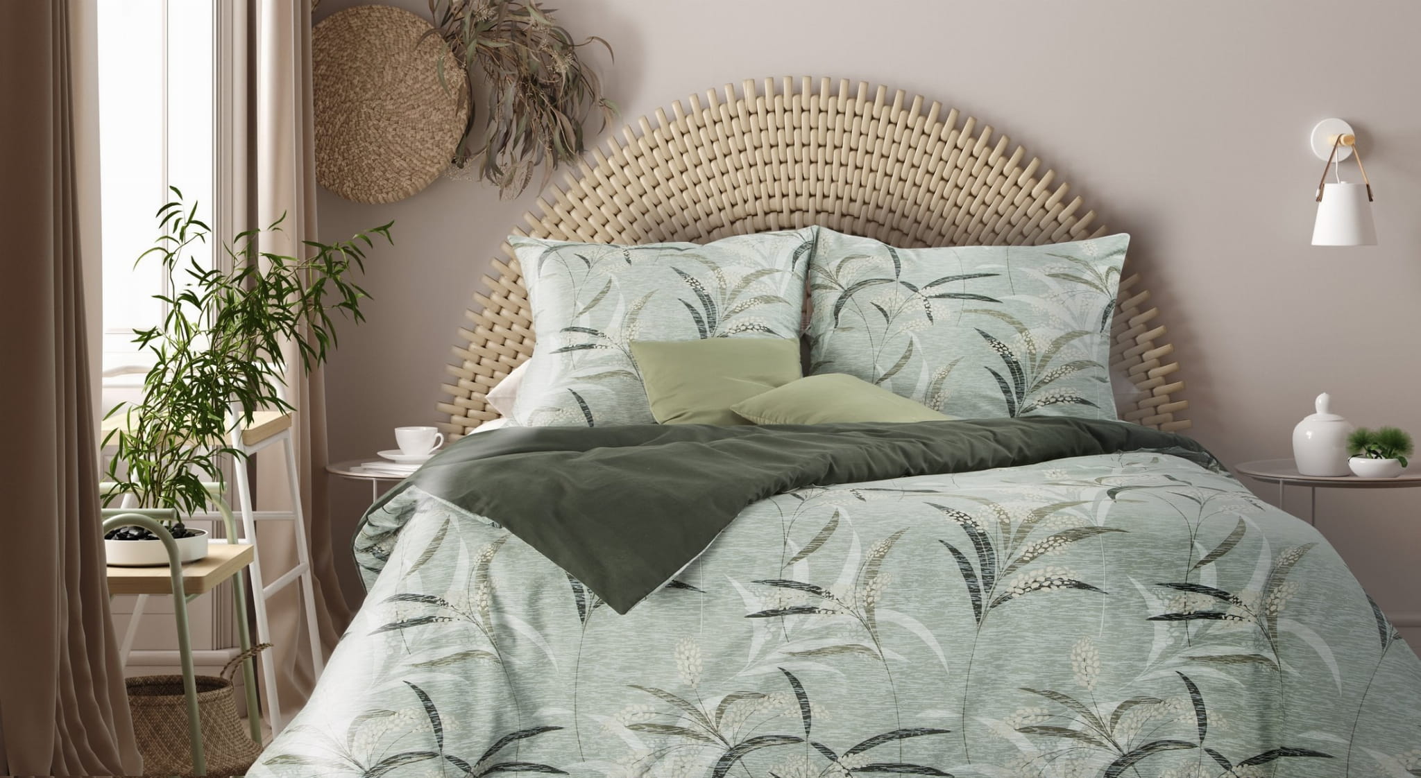 KOMPLET POŚCIELI - montenegro - 160x200 z roślinnym nadrukiem z bawełna na zamek