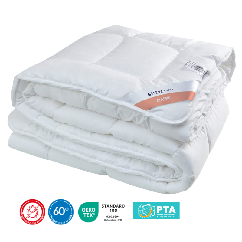 Kołdra Classic Całoroczna jest bardzo dobrym produktem. Ponieważ jest miękka, ciepła, łatwa w pielęgnacji i dostępna w różnych rozmiarach. Dodatkowo, posiada certyfikat Oeko-Tex Standard 100, co oznacza, że jest bezpieczna dla zdrowia.