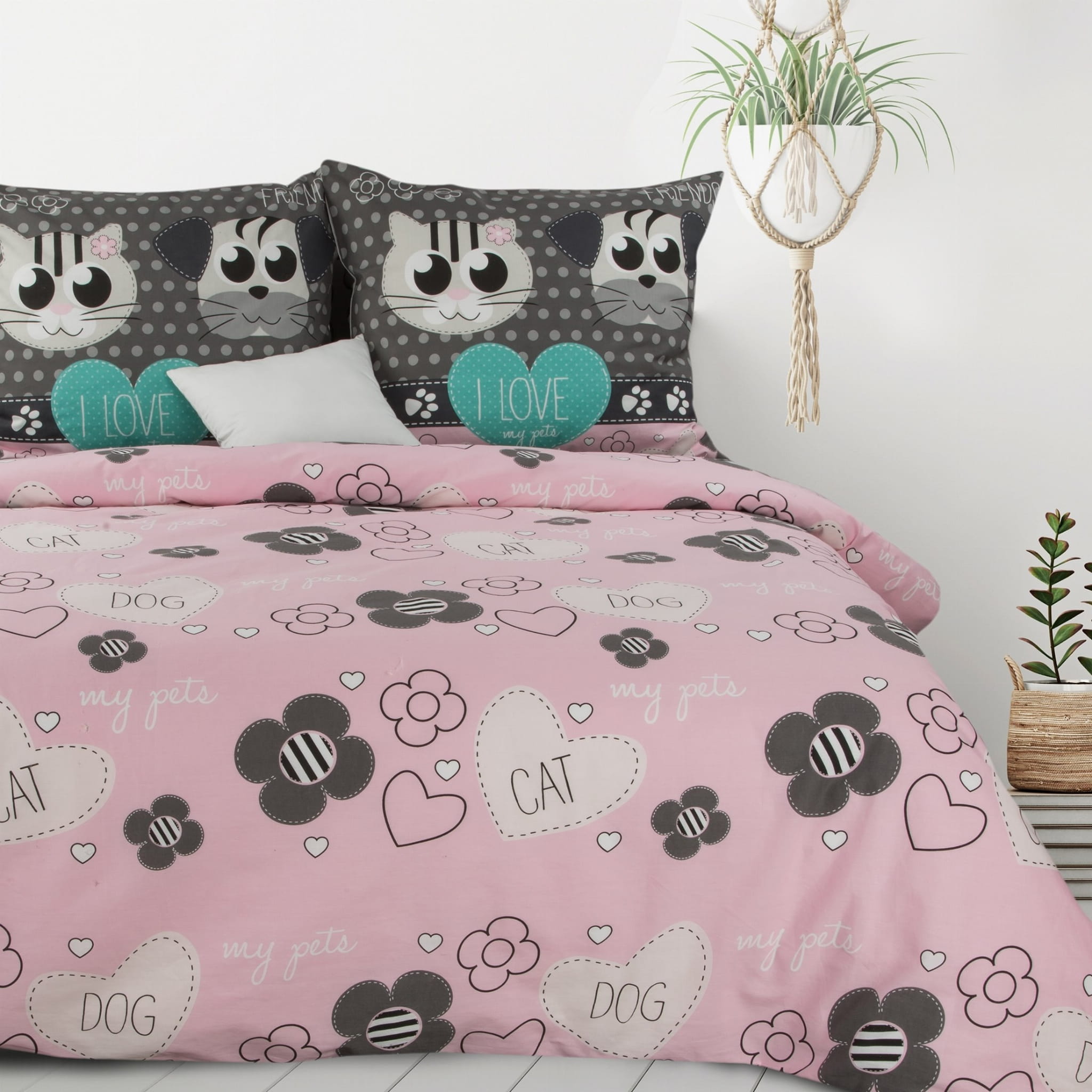 Komplet Pościeli Design91 - CAT&DOG - 140X200 bawełna na zamek