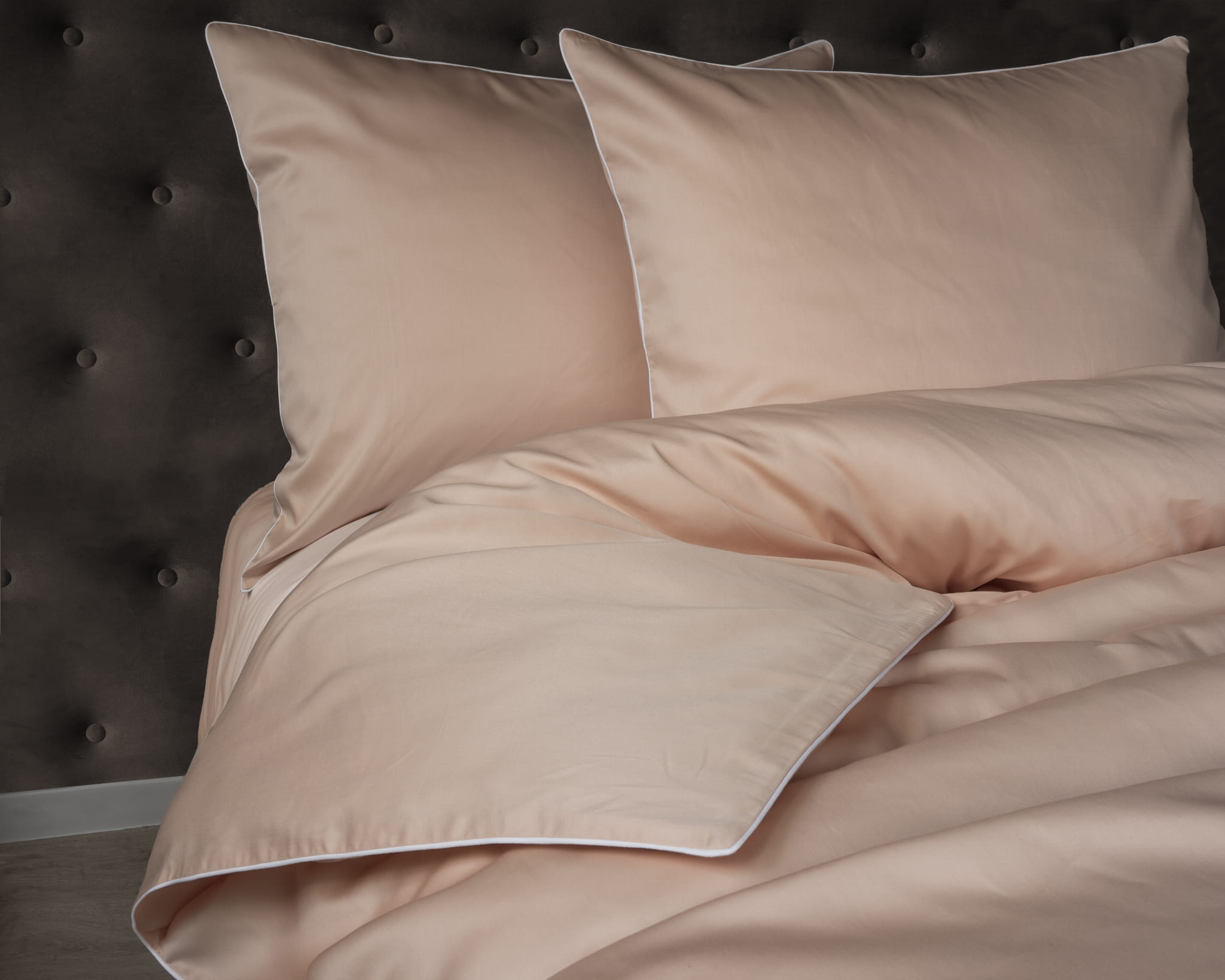 Komplet pościeli makosatyna z lamówką - brzoskwiniowy - 160x200 na zamek - 100% bawełna