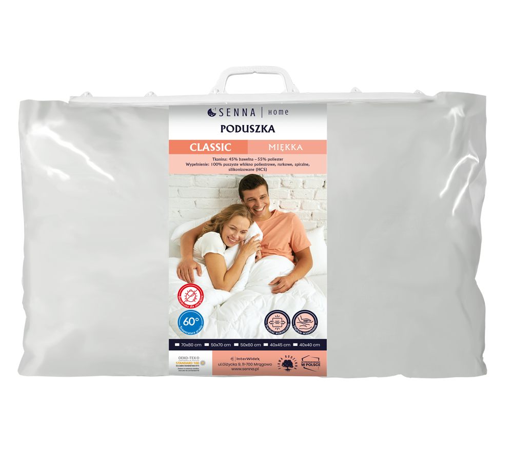 Poduszka Classic Miękka to produkt, który doskonale spełnia wysokie wymagania jakościowe i użytkowe. Możliwość prania eliminuje szkodliwe dla człowieka drobnoustroje.