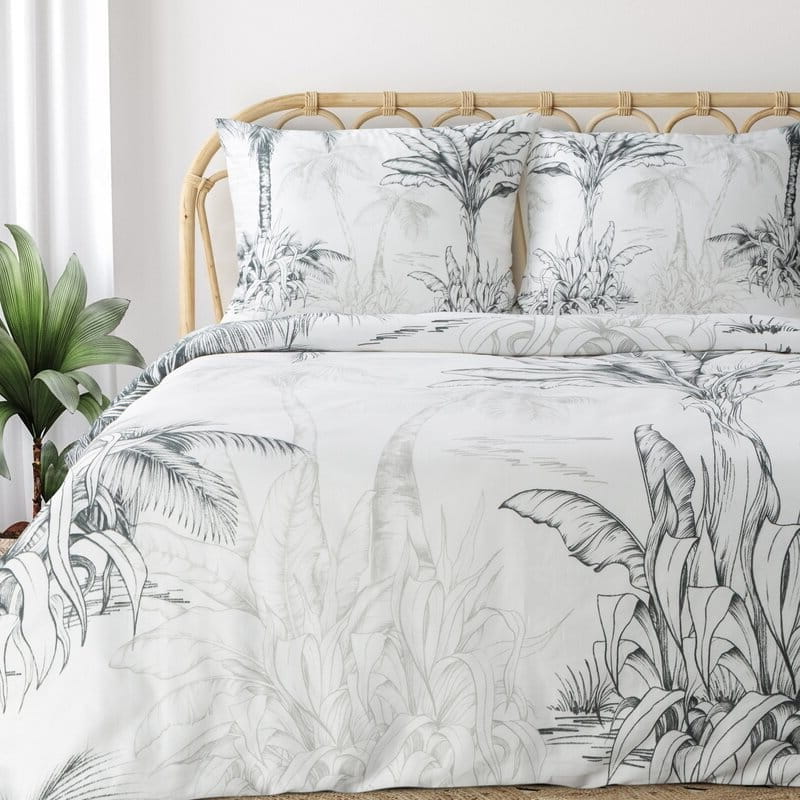Pościel bawełniana z motywem liści bananowca 160x200 elegancka pościel