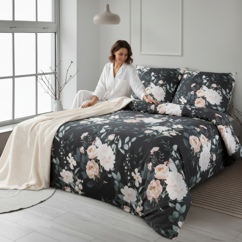 Szukasz pościeli, która połączy w sobie piękno natury i komfortowy sen? Komplet pościeli  z satyny bawełnianej z motywem botanicznym to idealny wybór dla Ciebie!
