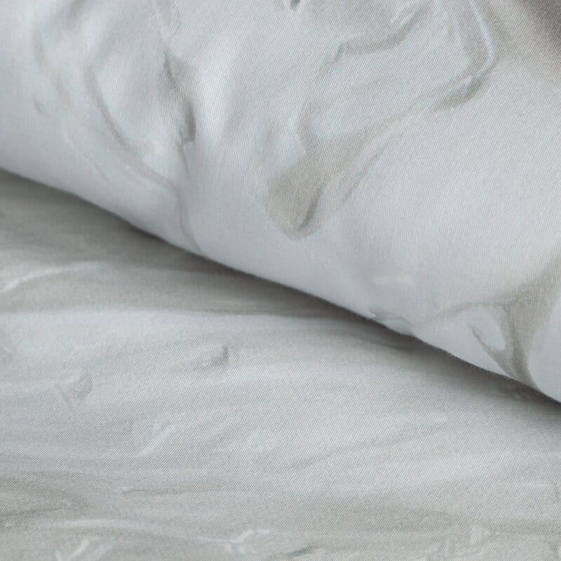 Komplet pościeli został starannie uszyty z najwyższej jakości oddychającej bawełny satynowej – makosatyna, która jest delikatna i jedwabiście miękka. Pościel jest niezwykle trwała i posiada swoistą łatwość prasowania. Komplet tejże pościeli skomponowano z dwóch rodzajów tkanin - wierzchnią stronę zdobi designerski nadruk, a spodnią gładka tkanina tworzące harmonijną i stylową kompozycję. Nowoczesna technologia barwienia sprawiła, że pościel nie traci intensywności kolorów nawet po wielu praniach. System trwałych zamków błyskawicznych ułatwia jej zmianę. Pościel jest jedwabiście miła i subtelna w dotyku, co daje uczucie odprężenia, zadowolenia i zapewnia komfortowy sen.