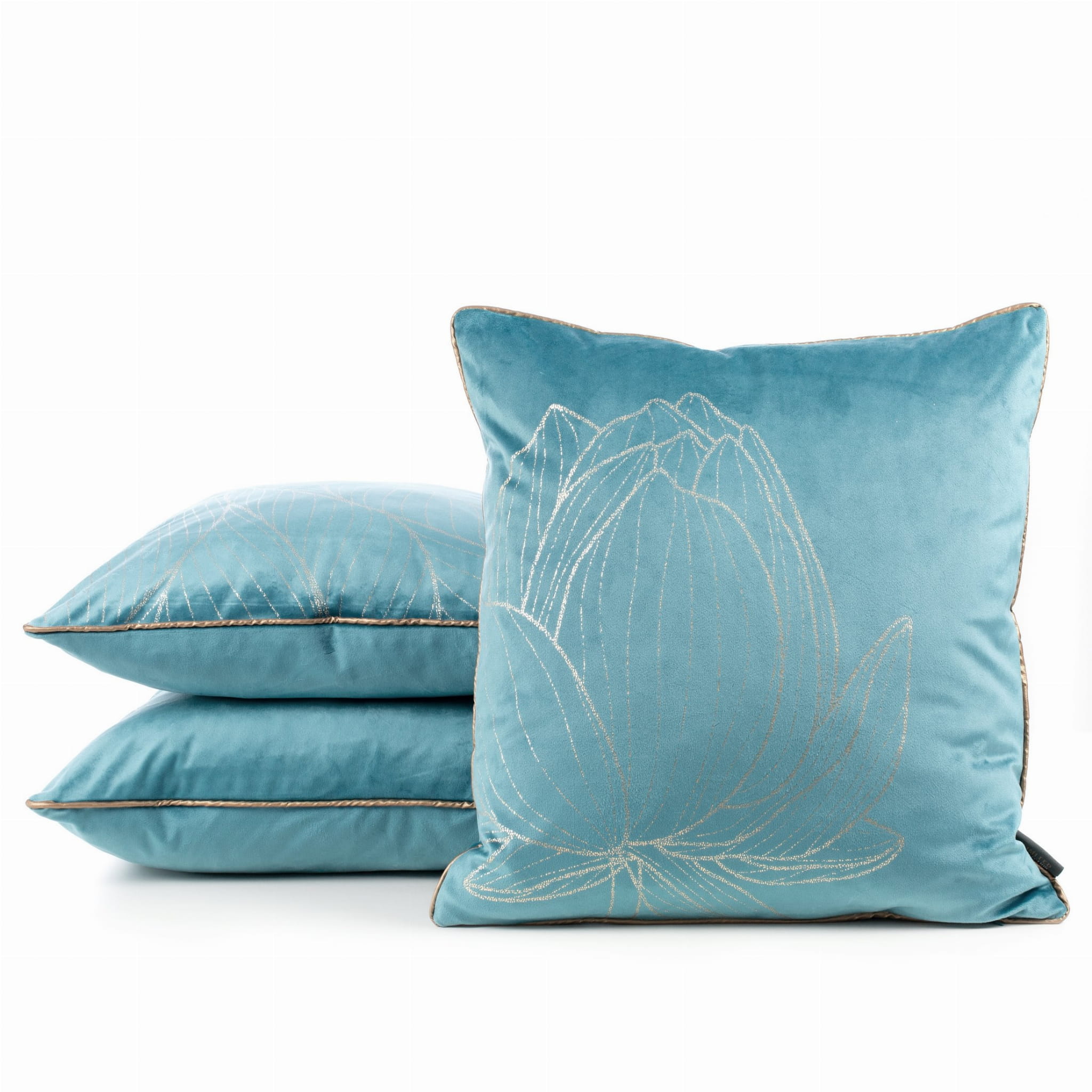 limited collection -POSZEWKA DEKOR - lotos - VELVET 45X45 ZŁOTY nadruk