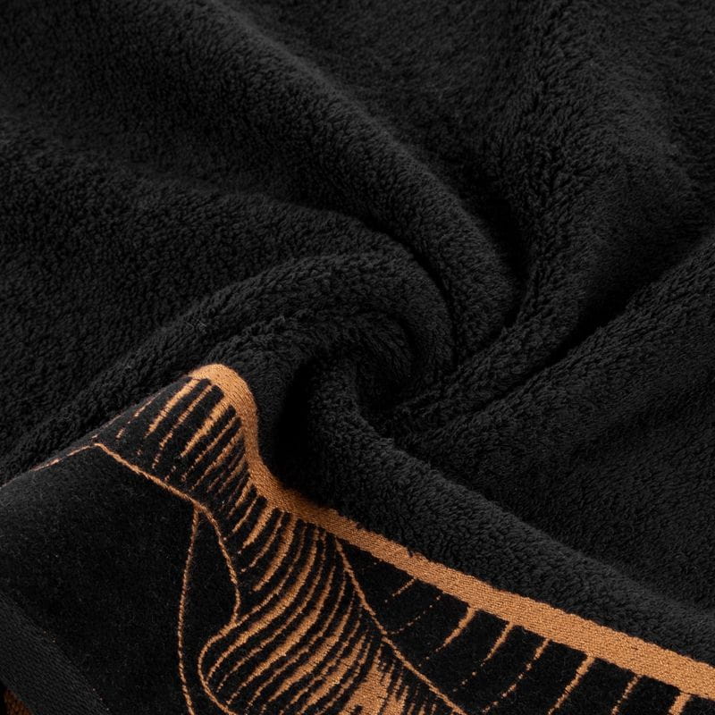 Oryginalna kolekcja ekskluzywnych ręczników z welwetową bordiurą z geometrycznym wzorem w odcieniu matowego złota. Nowoczesność i elegancja !