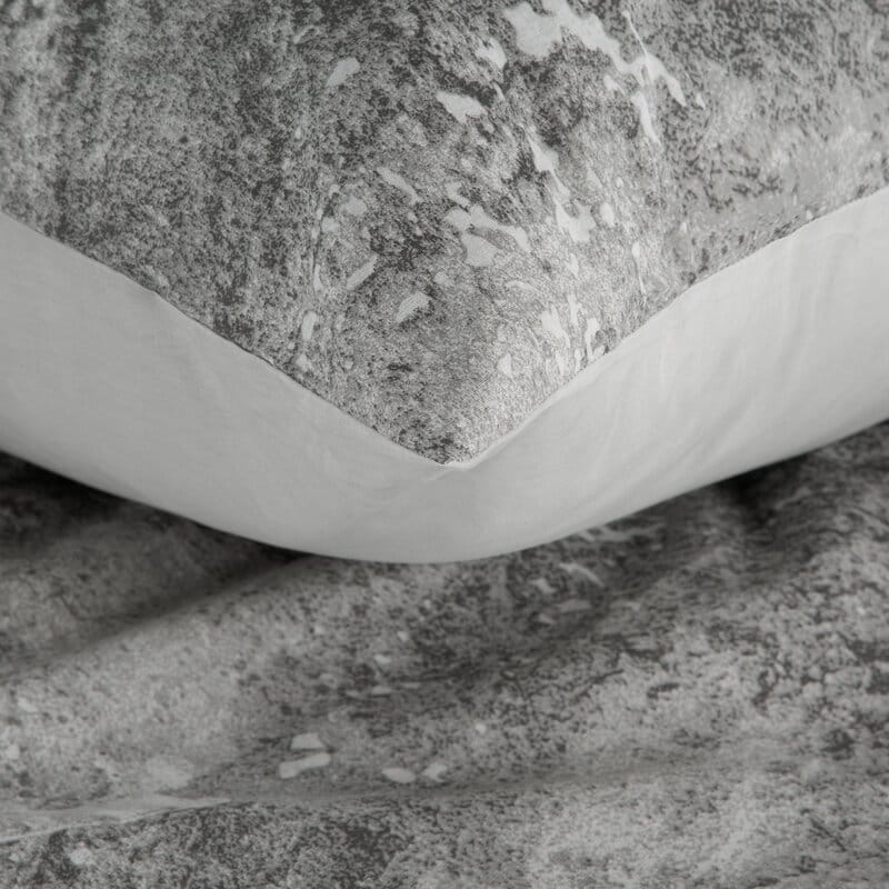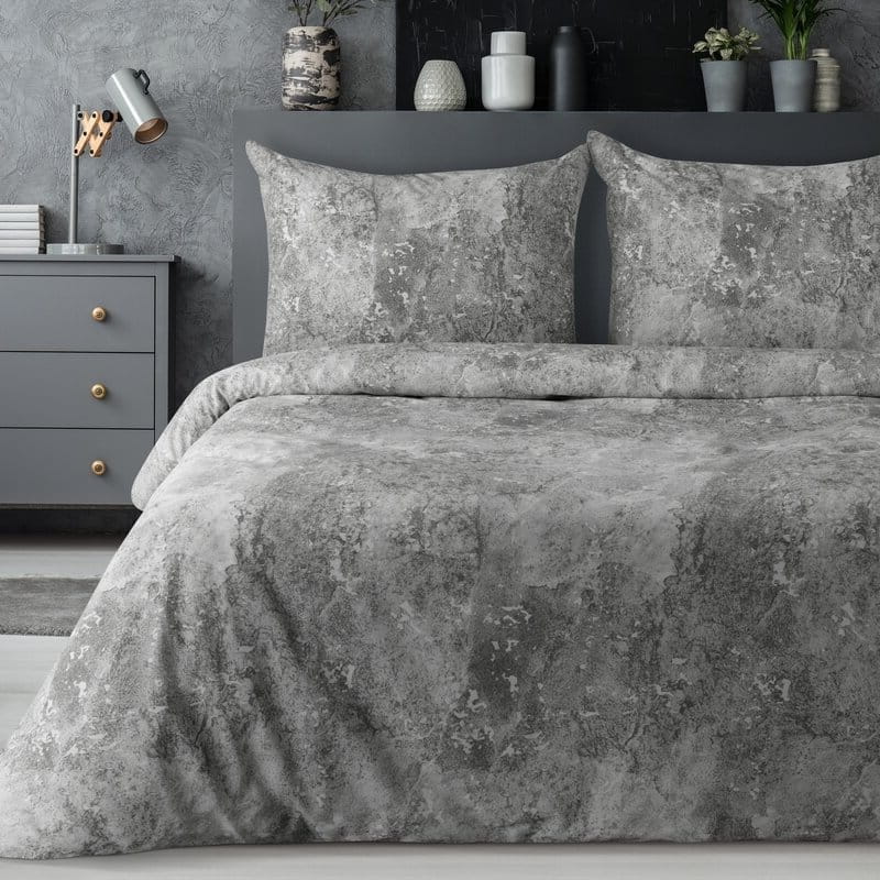 Pościel wykonana jest z wysokiej jakości bawełny, która zapewnia doskonałą cyrkulację powietrza, miękkość w dotyku oraz odporność na częste pranie. Subtelny, kamienny wzór w odcieniach szarości doskonale komponuje się z industrialnymi, skandynawskimi i nowoczesnymi aranżacjami sypialni.