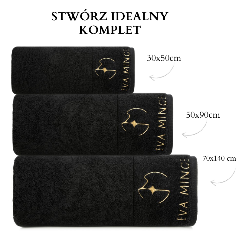 piękny RĘCZNIK EVA MINGE - logowany złoty haft - 70X140 - PREMIUM czarny
